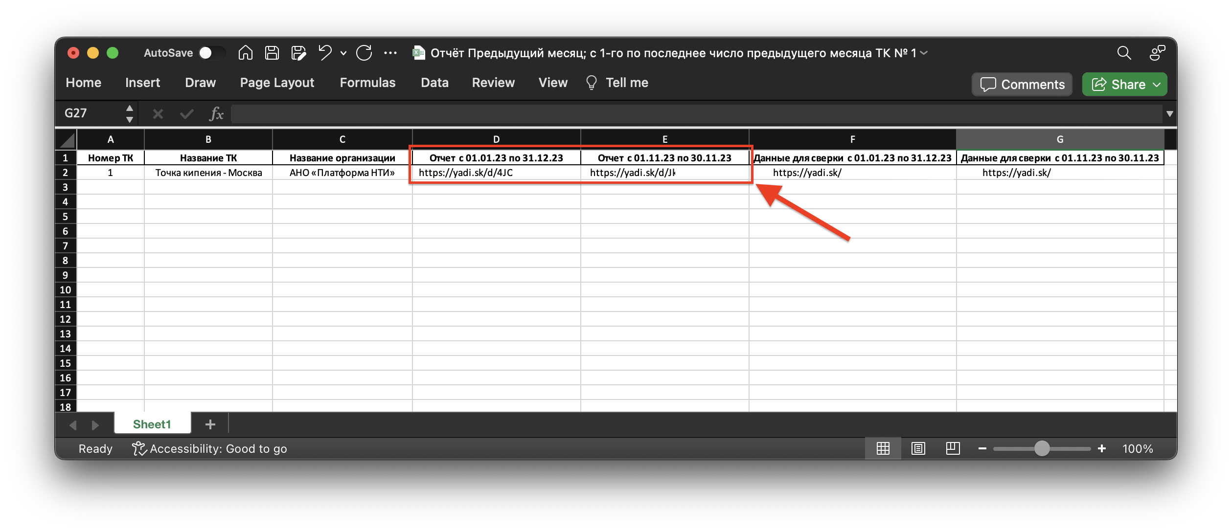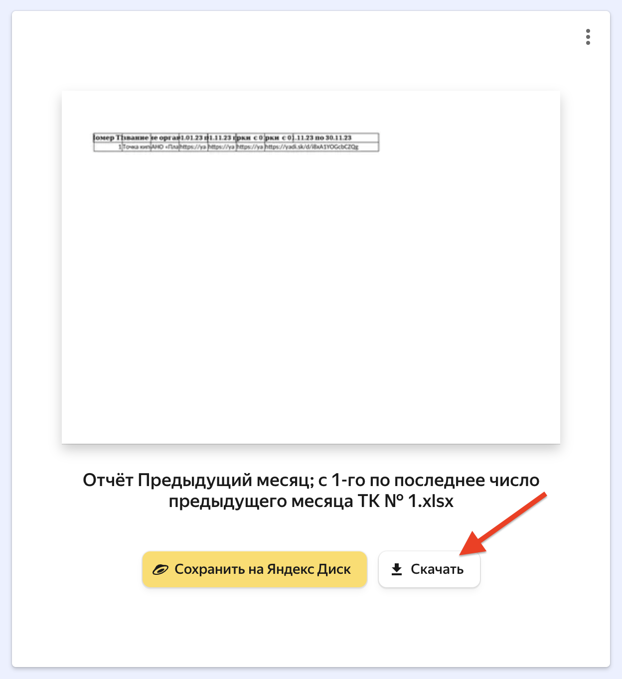 5. Как только отчёт будет сформирован (это может занять от 5 минут до 1 часа) нажмите на иконку выгрузки и скачайте файл с ссылками на отчет: