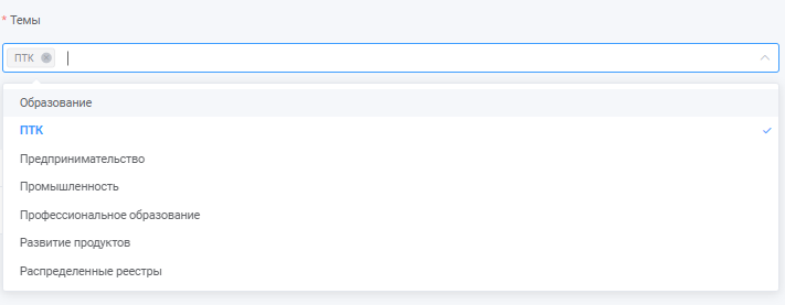 Чтобы создать мероприятие ПТК, нужно в административном интерфейсе на странице редактирования мероприятия есть выбрать одной из тематик события тему «ПТК»: