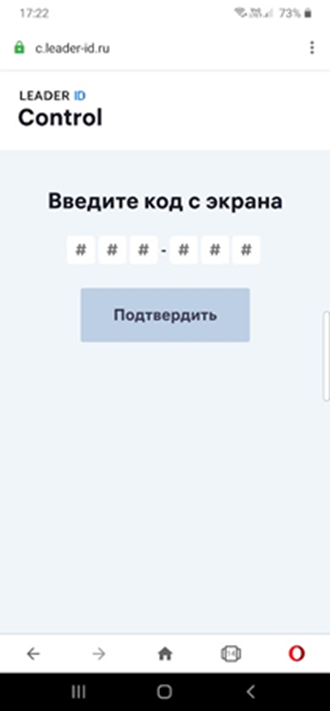 - Открыть с мобильного телефона, планшета или ноутбука страницу c.leader-id.ru и ввести в специальное поле код, который будет указан на экране. После успешного ввода кода появится окно для авторизации в своем профиле на сайте Leader-ID (если в этот момент вы не были авторизованы на своем устройстве).