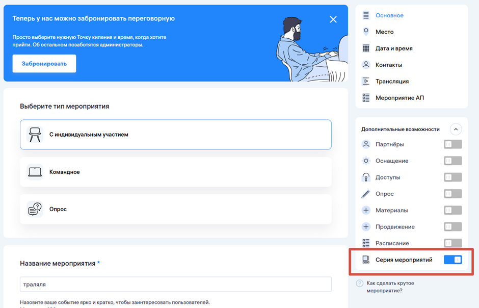 На нашей платформе появилась важная функция — «Серия мероприятий».