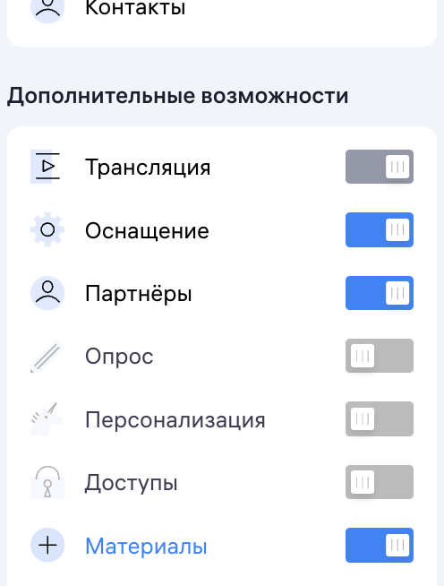 При создании или редактировании мероприятия на этапе «Материалы»: