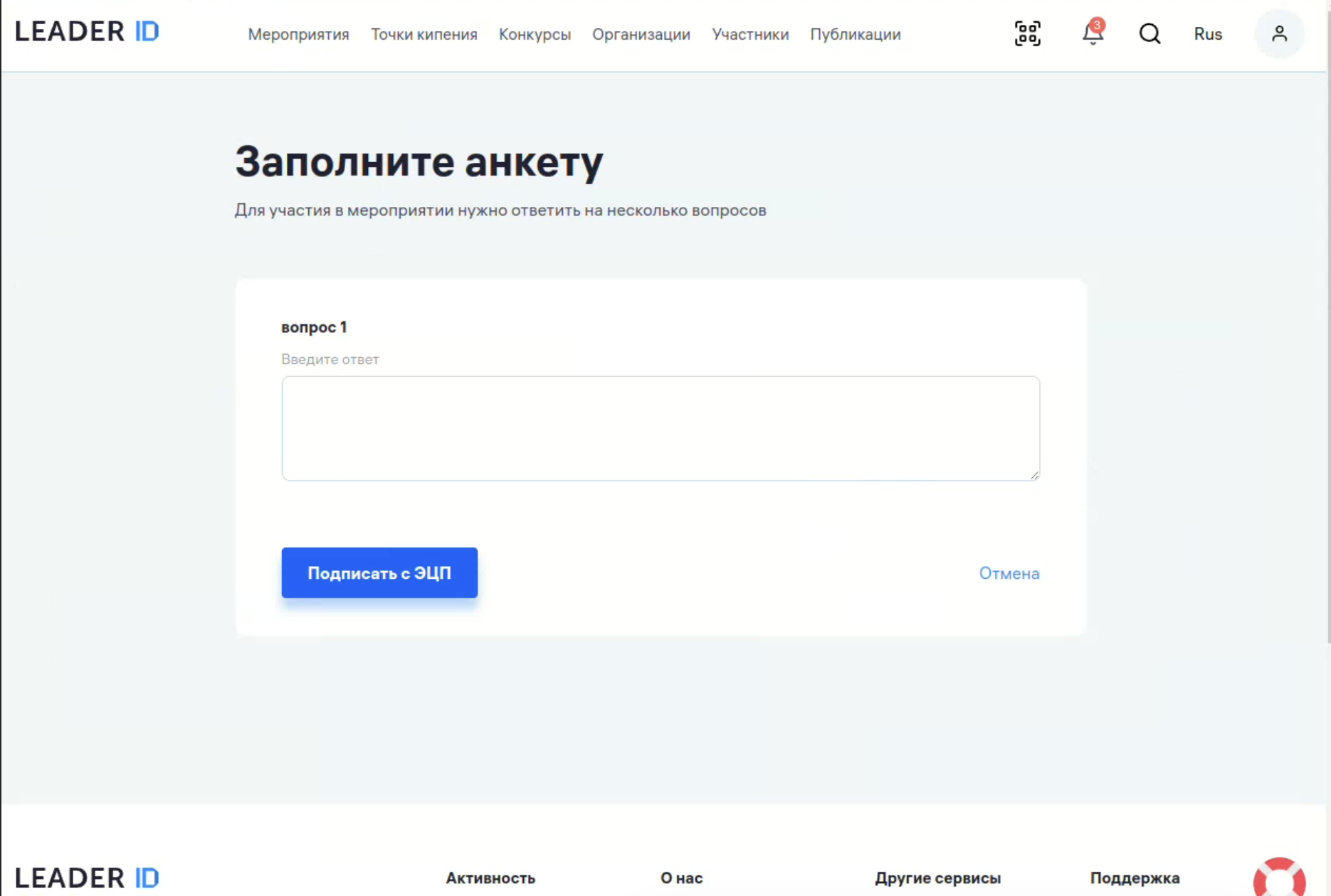 В определенных мероприятиях присутствует необходимость подписи подаваемой анкеты с помощью электронной подписи (далее — ЭП).