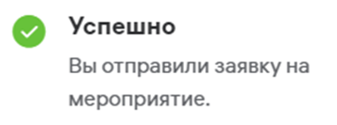 Если организатор мероприятия выбрал формат, при котором он будет рассматривать все поступающие заявки, то в таком случае после подачи заявки в правом верхнем углу страницы отобразится информация о том, что вы отправили заявку на мероприятие: