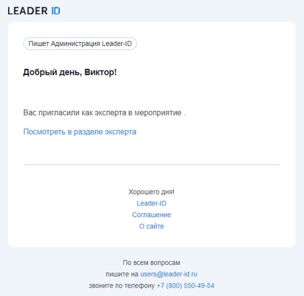 Если пользователь был добавлен в качестве эксперта, то ему отправляется письмо с уведомлением об этом.