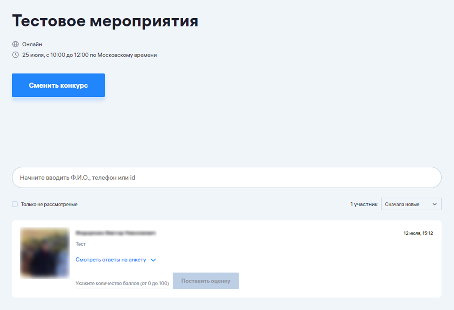 Оценки, поставленные экспертами, отображаются в «Кабинете организатора». По каждому оцененному участнику мероприятия, отображается только средняя оценка от всех экспертов.