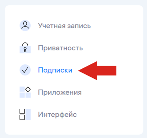 В меню, которое расположено в правой части страницы, выберите пункт «Подписки».