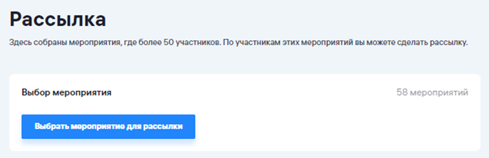 Для мероприятий, где больше 50 участников, существует возможность создать рассылку по участникам мероприятия.