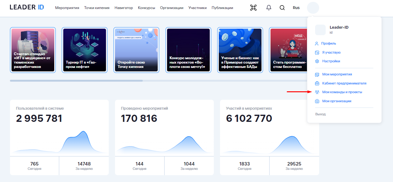 Как войти в раздел «Мои команды и проекты»