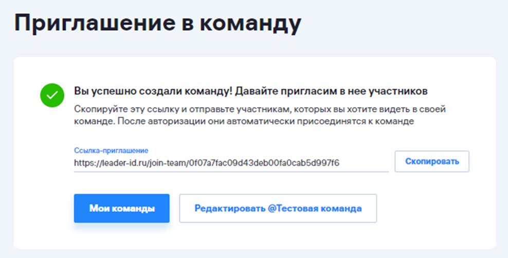 После создания команды ее создатель (лидер) может пригласить в нее других участников, отправив им ссылку-приглашение.
