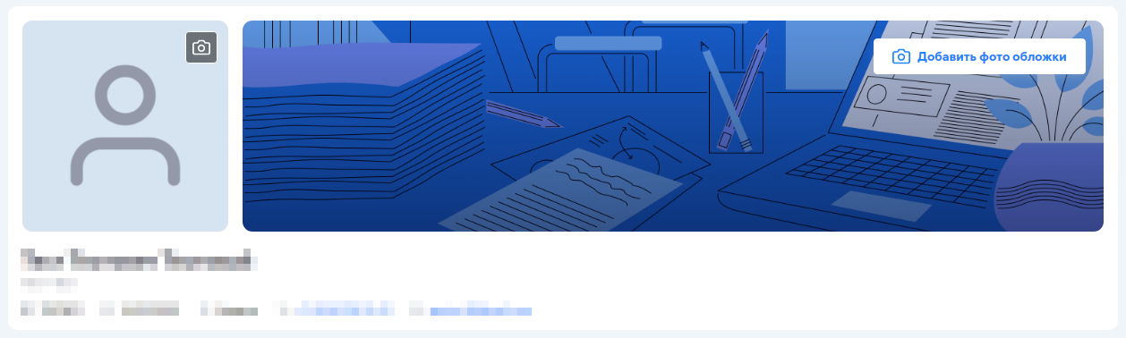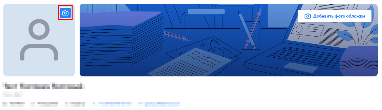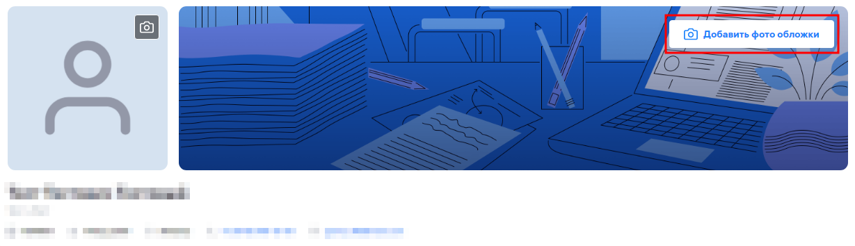 2. Изменить фото обложки профиля кликнув по кнопке «Добавить фото обложки»: